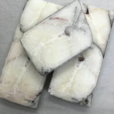 🔥 Стейк зубатки синей📍 Регион: Северная Атлантика. Пищевая ценность на 100 г: Белки — 18,5 г, Жиры — 1,2 г, Углеводы — 0 г, Калорийность — 85 ккал. ● Вес: 0,5–0,7 кг